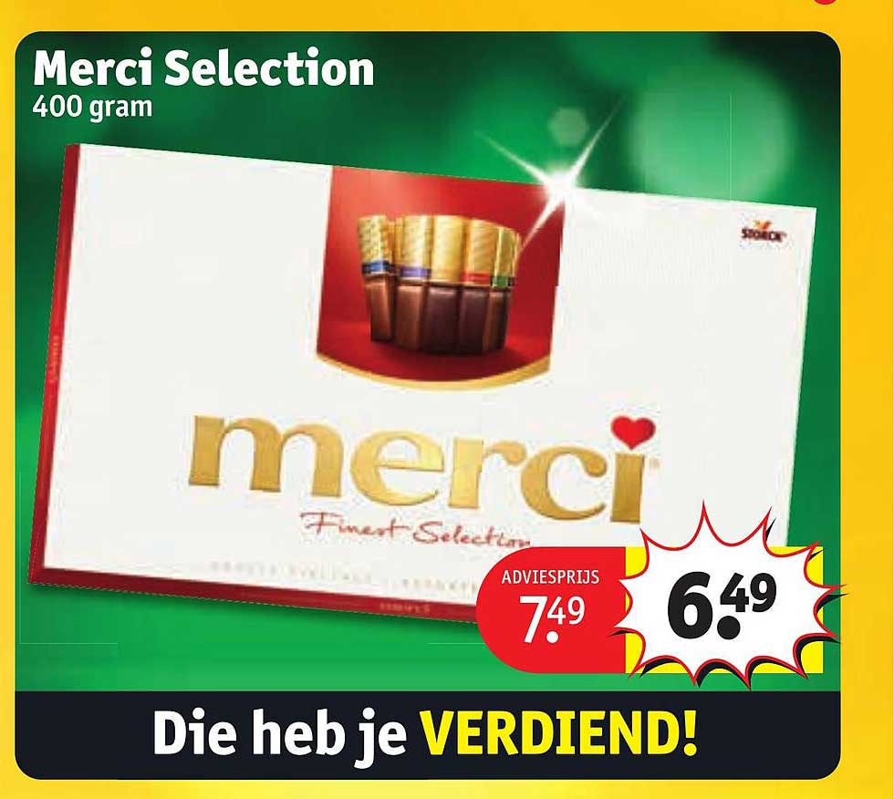 Ontdek de geweldige Merci Selection aanbieding in de nieuwste Kruidvat folder. Naast deze aanbieding vind je nog veel meer aantrekkelijke kortingen. Je kunt de Merci Selection eenvoudig online bestellen via de Kruidvat website of kopen in een winkel bij jou in de buurt.