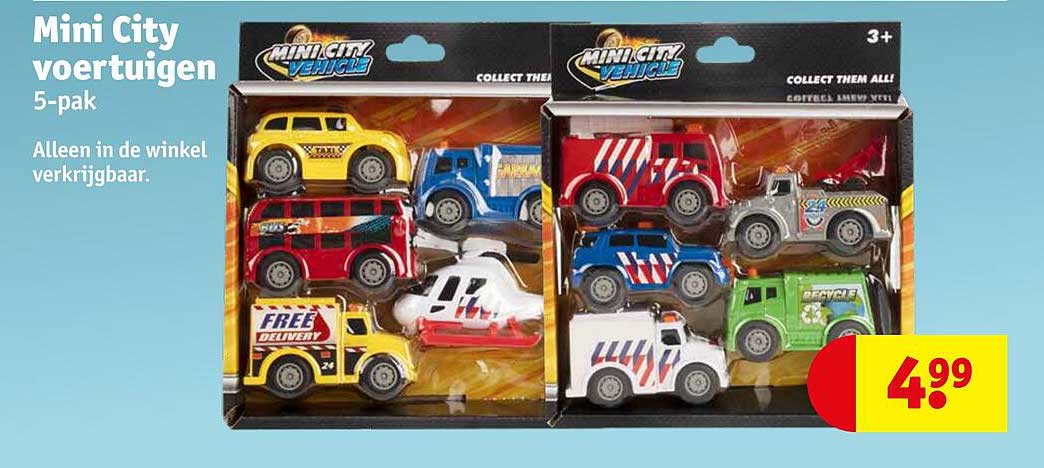 Bekijk de Mini City Voertuigen 5-Pak aanbieding bij Kruidvat! Deze fantastische aanbieding is nu beschikbaar in de nieuwste Kruidvat folder. Profiteer van deze kans en bespaar flink op je aankoop.