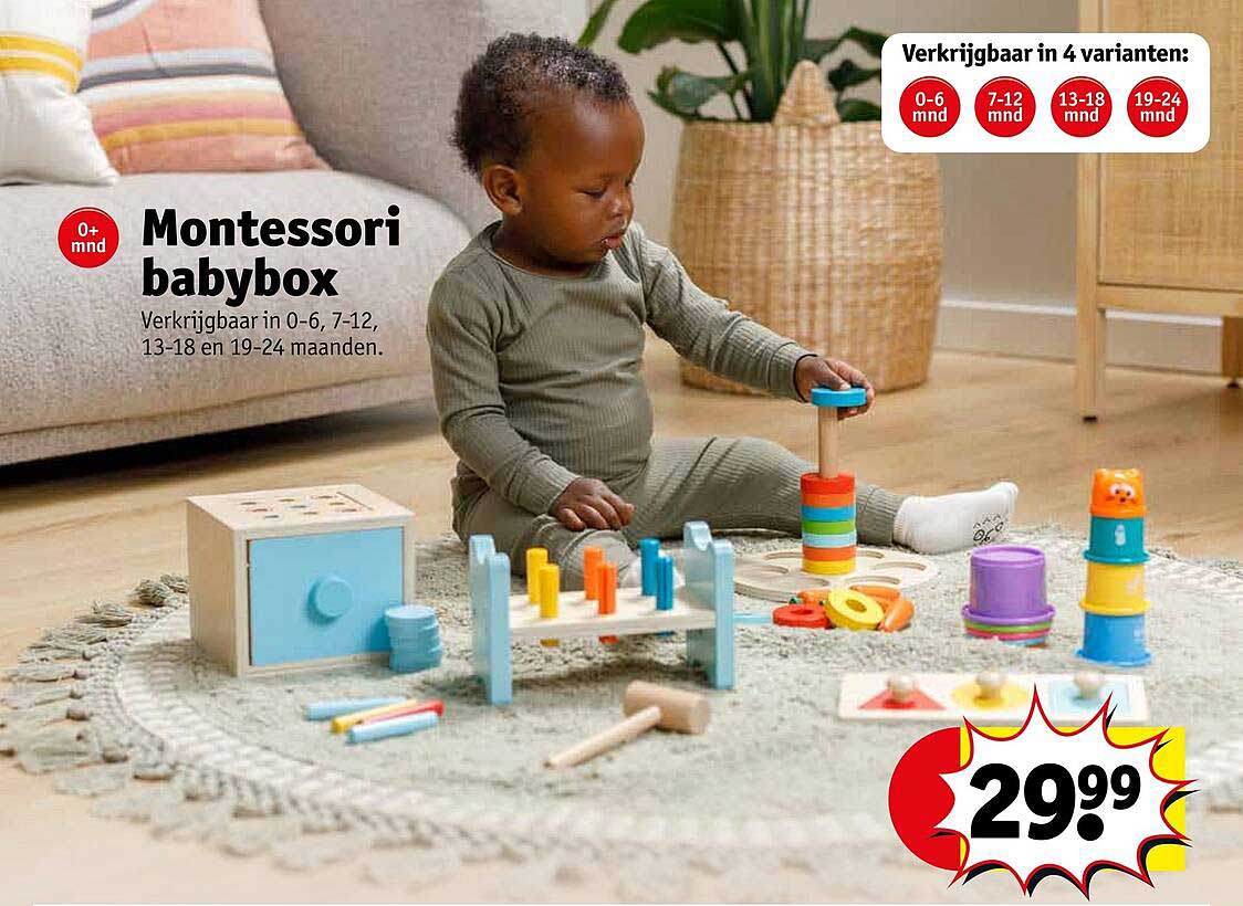 Bekijk nu de Montessori babybox aanbieding in de Kruidvat folder. Deze aanbieding is geldig van 04-11-2024 tot en met 10-11-2024.