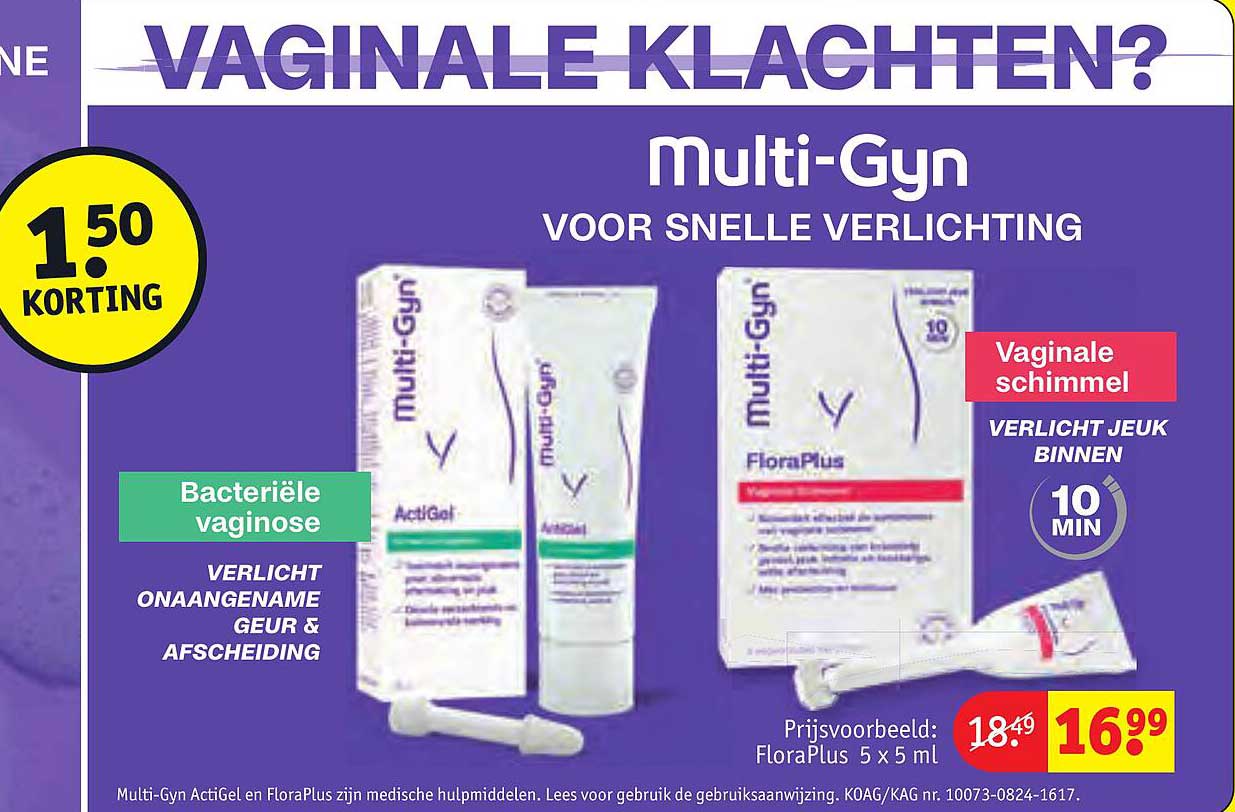 Bekijk de Multi-Gyn Voor Snelle Verlichting aanbieding bij Kruidvat! Deze fantastische aanbieding is nu beschikbaar in de nieuwste Kruidvat folder. Profiteer van deze kans en bespaar flink op je aankoop.