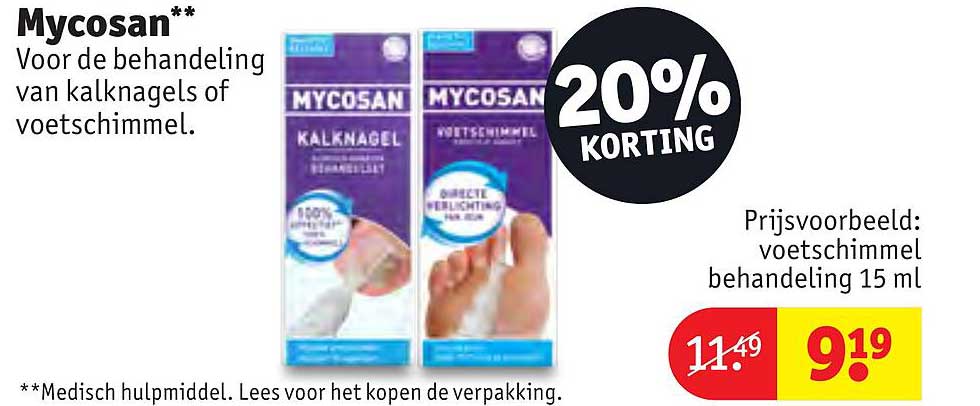Bekijk de Mycosan** aanbieding bij Kruidvat! Deze fantastische aanbieding is nu beschikbaar in de nieuwste Kruidvat folder. Profiteer van deze kans en bespaar flink op je aankoop.