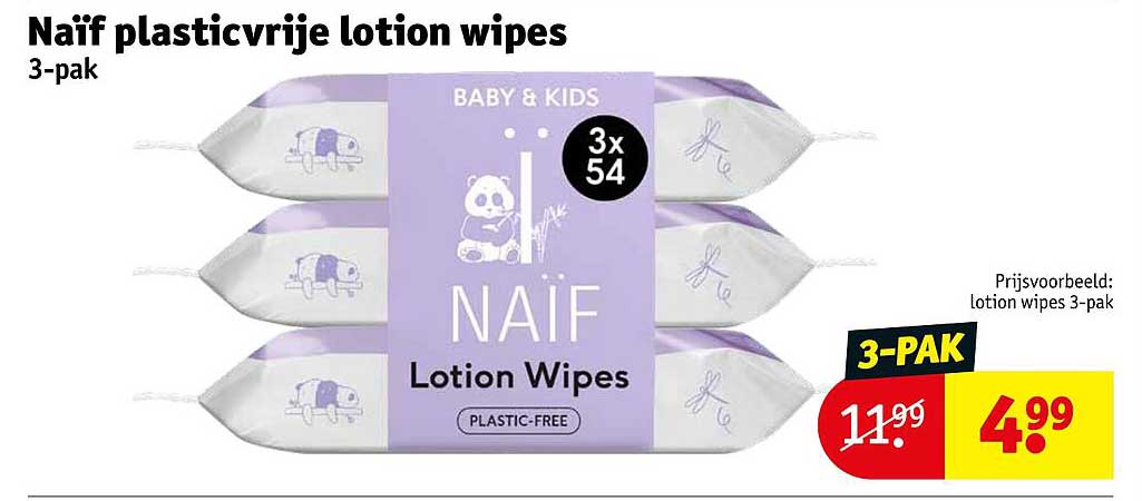 Bekijk nu de Naïf plasticvrije lotion wipes 3-pak aanbieding in de Kruidvat folder. Deze aanbieding is geldig van 07-04-2025 tot en met 13-04-2025.