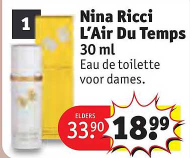 Bekijk de Nina Ricci L’air Du Temps 30 Ml aanbieding bij Kruidvat! Deze fantastische aanbieding is nu beschikbaar in de nieuwste Kruidvat folder. Profiteer van deze kans en bespaar flink op je aankoop.
