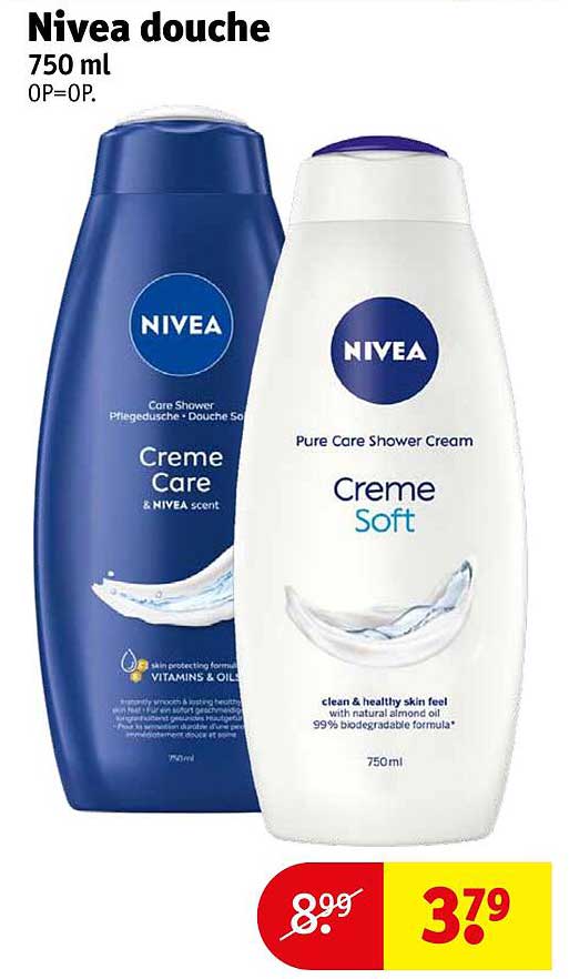 Ontdek de geweldige Nivea Douche aanbieding in de nieuwste Kruidvat folder. Naast deze aanbieding vind je nog veel meer aantrekkelijke kortingen. Je kunt de Nivea Douche eenvoudig online bestellen via de Kruidvat website of kopen in een winkel bij jou in de buurt.