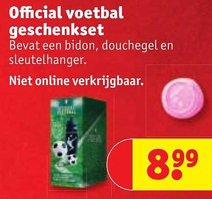 Bekijk de Official Voetbal Geschenkset aanbieding bij Kruidvat! Deze fantastische aanbieding is nu beschikbaar in de nieuwste Kruidvat folder. Profiteer van deze kans en bespaar flink op je aankoop.