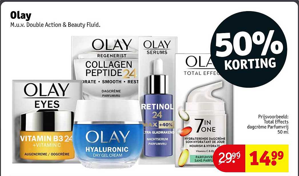 Ontdek de geweldige Olay aanbieding in de nieuwste Kruidvat folder. Naast deze aanbieding vind je nog veel meer aantrekkelijke kortingen. Je kunt de Olay eenvoudig online bestellen via de Kruidvat website of kopen in een winkel bij jou in de buurt.