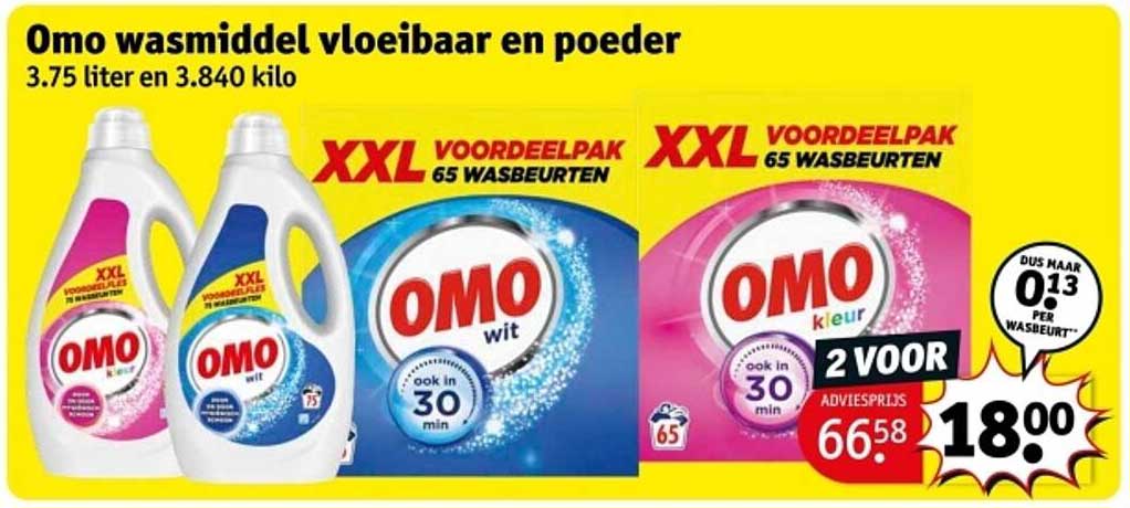 Bij Kruidvat vind je nu een geweldige aanbieding voor Omo wasmiddel, zowel in vloeibare als poedervorm. Dit voordeelpak is ideaal voor gezinnen die vaak wassen, want je krijgt maar liefst 65 wassen voor een ongeëvenaarde prijs. Dit maakt het een uitgelezen kans om je wasmiddelvoorraad aan te vullen en tegelijkertijd te profiteren van een scherpe korting!