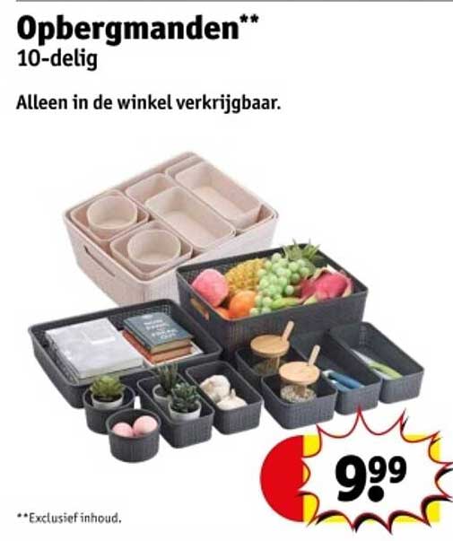 Bekijk nu de Opbergmanden** 10-delig aanbieding in de Kruidvat folder. Deze aanbieding is geldig van 15-07-2025 tot en met 20-07-2025.