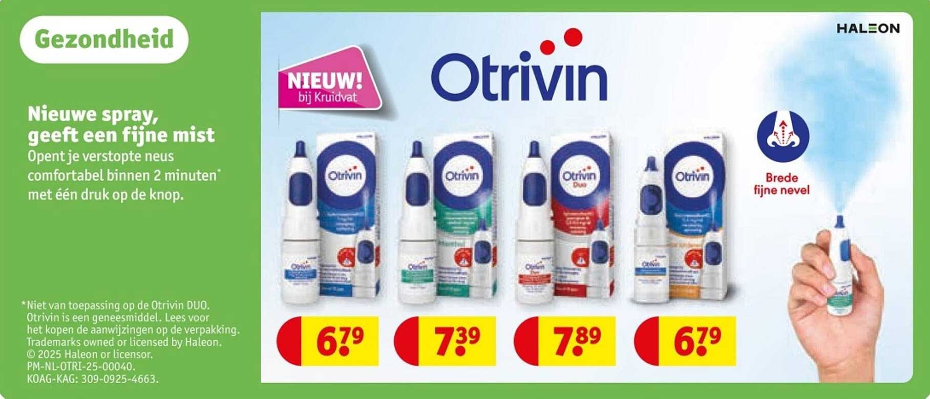 Mis deze kans niet! Neem snel een kijkje hier voor meer informatie over de Otrivin Neusspray en ontdek andere geweldige aanbiedingen bij Kruidvat.