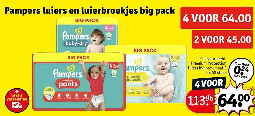 Bekijk de Pampers Luier En Luierbroekjes Big Pack aanbieding bij Kruidvat! Deze fantastische aanbieding is nu beschikbaar in de nieuwste Kruidvat folder. Profiteer van deze kans en bespaar flink op je aankoop.