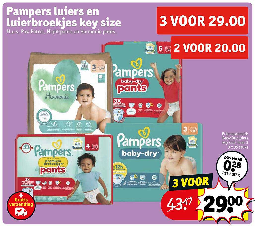 Nu kun je profiteren van een geweldige prijs: 3 voor slechts €29,00! Dit is een aanzienlijke besparing vergeleken met de gebruikelijke prijs van €43,41. Dit betekent dat je voor slechts €0,28 per luier een uitstekende kwaliteit krijgt. Waarom zou je het risico lopen met andere merken, als je kunt kiezen voor de vertrouwde kwaliteit van Pampers voor een fractie van de prijs?