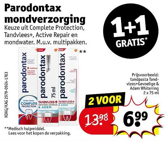 Bekijk de Parodontax Mondverzorging aanbieding bij Kruidvat! Deze fantastische aanbieding is nu beschikbaar in de nieuwste Kruidvat folder. Profiteer van deze kans en bespaar flink op je aankoop.
