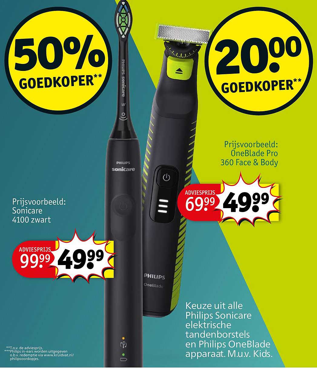 Bekijk de Philips Sonicare 4100 Zwart En Philips Oneblade Pro 360 Face & Body aanbieding bij Kruidvat! Deze fantastische aanbieding is nu beschikbaar in de nieuwste Kruidvat folder. Profiteer van deze kans en bespaar flink op je aankoop.