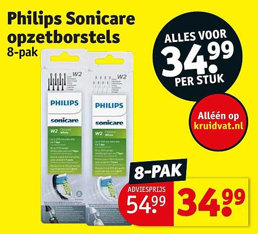 Bekijk de Philips Sonicare Opzetborstels 8-Pak aanbieding bij Kruidvat! Deze fantastische aanbieding is nu beschikbaar in de nieuwste Kruidvat folder. Profiteer van deze kans en bespaar flink op je aankoop.