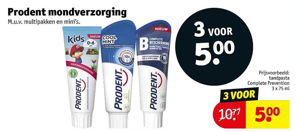 Bekijk de Prodent Mondverzorging aanbieding bij Kruidvat! Deze fantastische aanbieding is nu beschikbaar in de nieuwste Kruidvat folder. Profiteer van deze kans en bespaar flink op je aankoop.