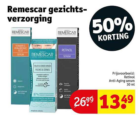 Bekijk nu de Remescar gezichtsverzorging aanbieding in de Kruidvat folder. Deze aanbieding is geldig van 07-10-2024 tot en met 20-10-2024.