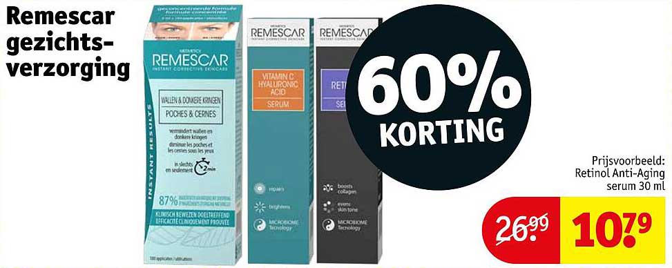Bekijk nu de Remescar gezichtsverzorging aanbieding in de Kruidvat folder. Deze aanbieding is geldig van 09-12-2024 tot en met 15-12-2024.