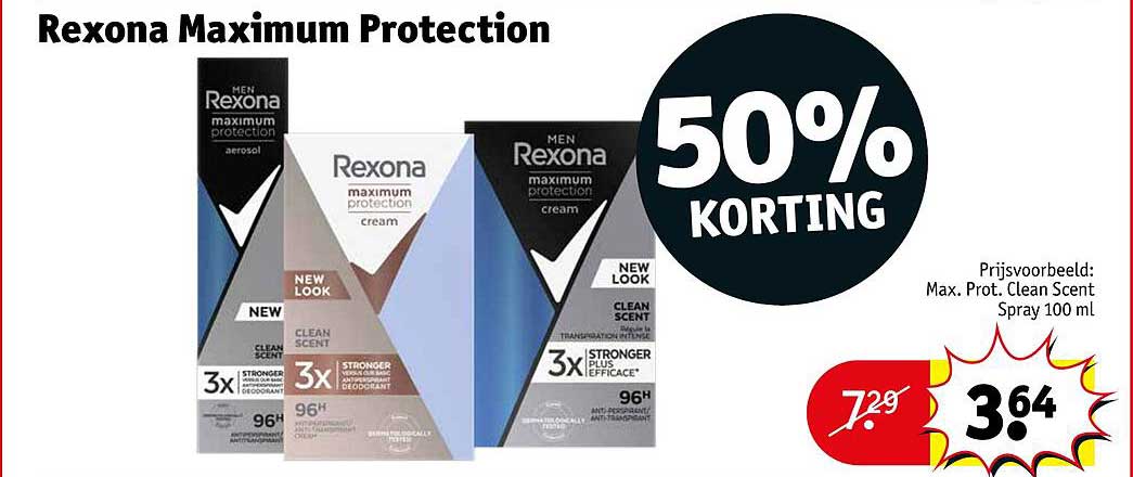 Met een normale prijs van €7,29 en nu voor slechts €3,64, is deze aanbieding moeilijk te weerstaan. Je bespaart 50% op een premium deodorant die je helpt de hele dag fris te blijven. Dit is de perfecte kans om Rexona Maximum Protection uit te proberen en de voordelen zelf te ervaren!