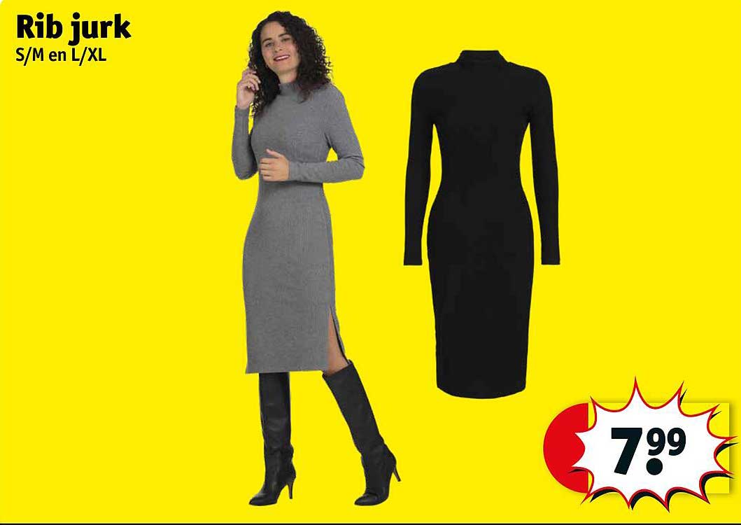 Bekijk de Rib Jurk aanbieding bij Kruidvat! Deze fantastische aanbieding is nu beschikbaar in de nieuwste Kruidvat folder. Profiteer van deze kans en bespaar flink op je aankoop.