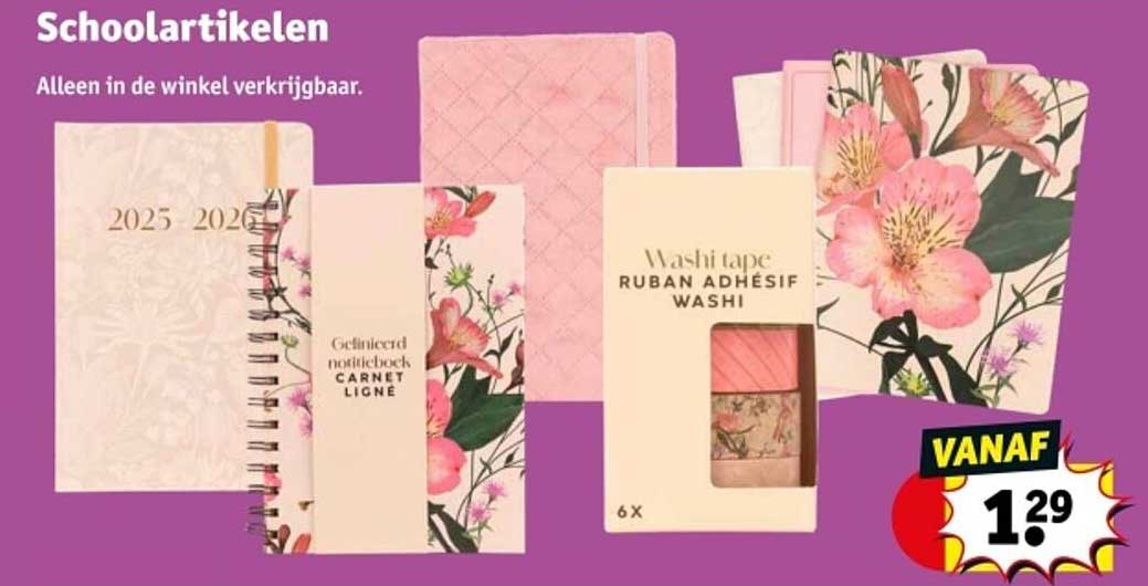 Heb je behoefte aan nieuwe schoolartikelen? Dan ben je hier aan het juiste adres! Kruidvat biedt een geweldige selectie van schoolspullen aan, perfect voor het nieuwe schooljaar. Of je nu op zoek bent naar notitieboeken, washi tape of een hoogwaardige agenda, bij Kruidvat vind je het allemaal. De aanbieding geldt van 8 juli tot en met 20 juli 2025, dus mis deze kans niet!