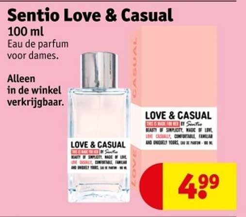 Met een aantrekkelijk prijskaartje van slechts €4,99 is Sentio Love & Casual een zeer voordelige keuze vergeleken met andere parfums in deze categorie. Normaal gesproken zou een parfum van deze kwaliteit aanzienlijk duurder zijn, dus dit is een unieke kans om jezelf te verwennen of om een ander te verrassen met een prachtig cadeau zonder je budget te overschrijden.