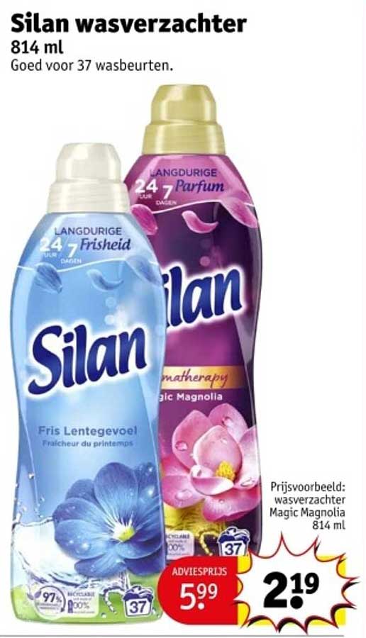 Wat een geweldige aanbieding voor alle wasliefhebbers! Deze week kun je bij Kruidvat de Silan wasverzachter 814 ml kopen voor slechts €2,19. Dit is een fantastische kans om je wasgoed een heerlijk frisse geur te geven zonder dat je je bankrekening raakt. Silan staat bekend om zijn langdurige geur en zijdezachte wasresultaat, dus dit is absoluut een deal die je niet wilt missen!