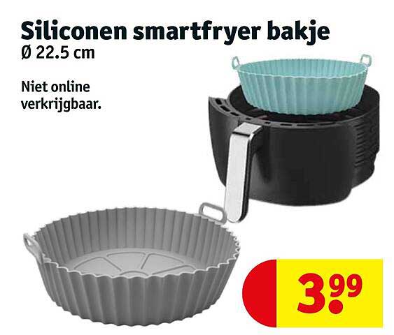 Bekijk de Siliconen Smartfryer Bakje aanbieding bij Kruidvat! Deze fantastische aanbieding is nu beschikbaar in de nieuwste Kruidvat folder. Profiteer van deze kans en bespaar flink op je aankoop.