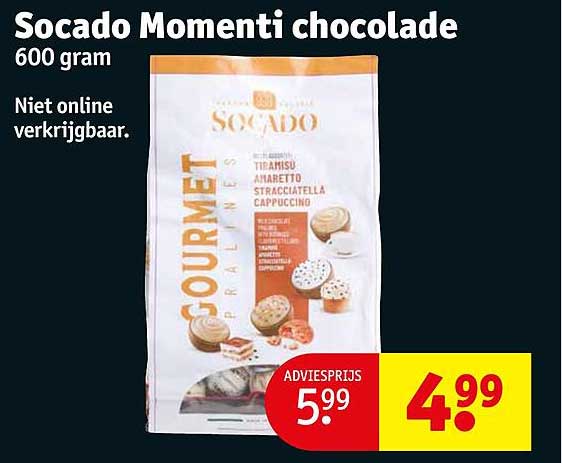 Ontdek de geweldige Socado Momenti Chocolade aanbieding in de nieuwste Kruidvat folder. Naast deze aanbieding vind je nog veel meer aantrekkelijke kortingen. Je kunt de Socado Momenti Chocolade eenvoudig online bestellen via de Kruidvat website of kopen in een winkel bij jou in de buurt.