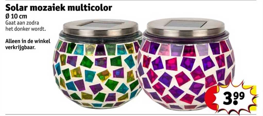 Bekijk nu de Solar mozaiek multicolor aanbieding in de Kruidvat folder. Deze aanbieding is geldig van 13-05-2025 tot en met 25-05-2025.