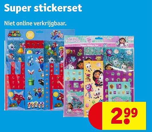 Bekijk de Super Stickerset aanbieding bij Kruidvat! Deze fantastische aanbieding is nu beschikbaar in de nieuwste Kruidvat folder. Profiteer van deze kans en bespaar flink op je aankoop.