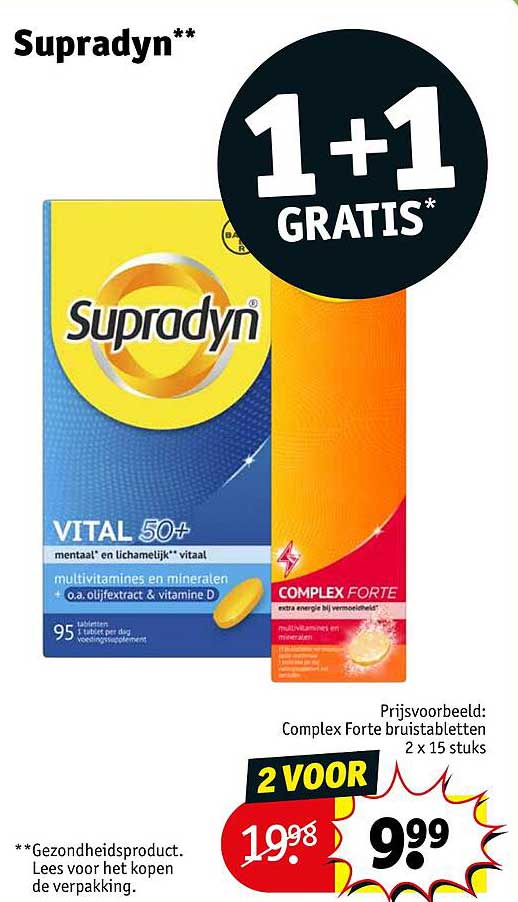 Ontdek de geweldige Supradyn** aanbieding in de nieuwste Kruidvat folder. Naast deze aanbieding vind je nog veel meer aantrekkelijke kortingen. Je kunt de Supradyn** eenvoudig online bestellen via de Kruidvat website of kopen in een winkel bij jou in de buurt.