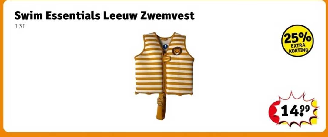 Bekijk nu de Swim Essentials Leeuw Zwemvest aanbieding in de Kruidvat folder. Deze aanbieding is geldig van 12-06-2025 tot en met 17-08-2025.