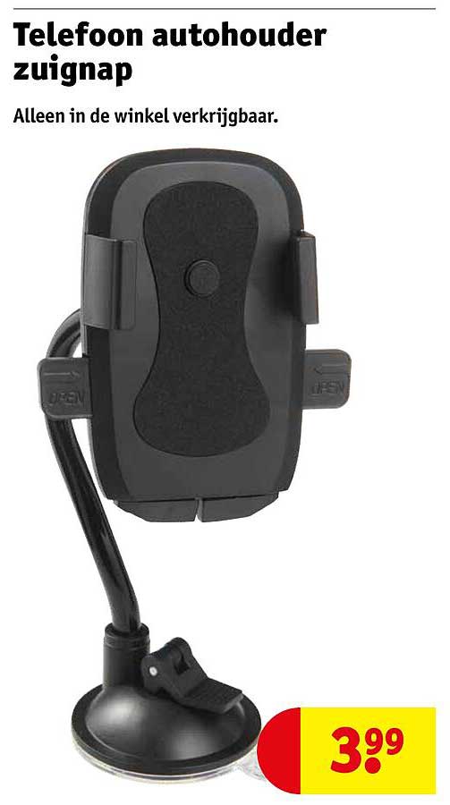 Bekijk de Telefoon Autohouder Zuignap aanbieding bij Kruidvat! Deze fantastische aanbieding is nu beschikbaar in de nieuwste Kruidvat folder. Profiteer van deze kans en bespaar flink op je aankoop.