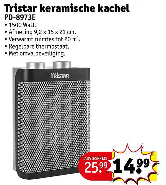Bekijk de Tristar Keramische Kachel aanbieding bij Kruidvat! Deze fantastische aanbieding is nu beschikbaar in de nieuwste Kruidvat folder. Profiteer van deze kans en bespaar flink op je aankoop.