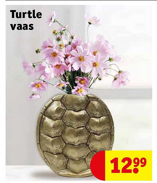Bekijk de Turtle Vaas aanbieding bij Kruidvat! Deze fantastische aanbieding is nu beschikbaar in de nieuwste Kruidvat folder. Profiteer van deze kans en bespaar flink op je aankoop.