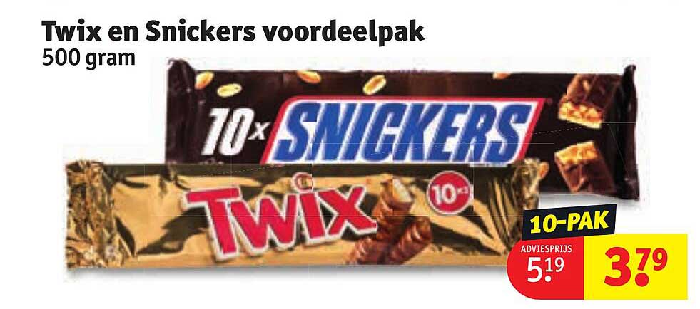 Bekijk de Twix En Snickers Voordeelpak aanbieding bij Kruidvat! Deze fantastische aanbieding is nu beschikbaar in de nieuwste Kruidvat folder. Profiteer van deze kans en bespaar flink op je aankoop.