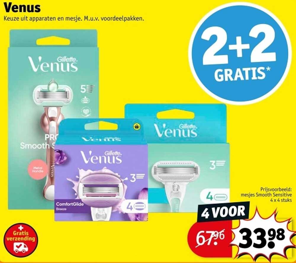 Bekijk nu de Venus 2+2 GRATIS* aanbieding in de Kruidvat folder. Deze aanbieding is geldig van 19-08-2025 tot en met 24-08-2025.