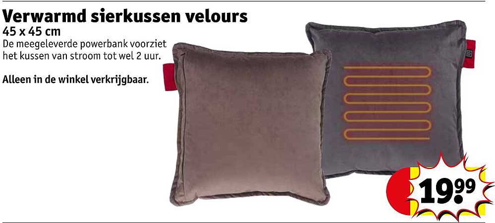Bekijk de Verwarmd Sierkussen Velours aanbieding bij Kruidvat! Deze fantastische aanbieding is nu beschikbaar in de nieuwste Kruidvat folder. Profiteer van deze kans en bespaar flink op je aankoop.