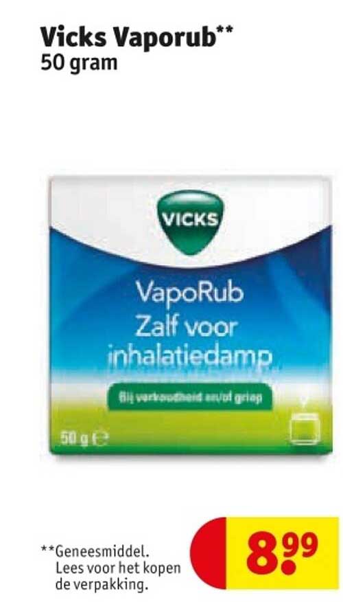 De prijs van Vicks Vaporub is nu slechts €8,99. Dit is een geweldige deal, gezien de normale prijs vaak hoger ligt. Vergelijk het met andere merken en je zult al snel zien dat je flinke besparingen kunt realiseren door deze aanbieding nu te benutten.