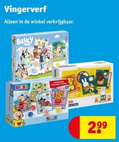Bij Kruidvat kun je deze week genieten van een geweldige aanbieding op vingerverf! Deze kleurrijke en creatieve producten zijn perfect voor jonge kunstenaars. Vingerverf stimuleert de fantasie van kinderen en biedt eindeloze mogelijkheden voor kunstzinnige uitspattingen. Of je nu een verjaardagsfeestje hebt of gewoon een creatief uurtje thuis wilt doorbrengen, deze vingerverf is een must-have.