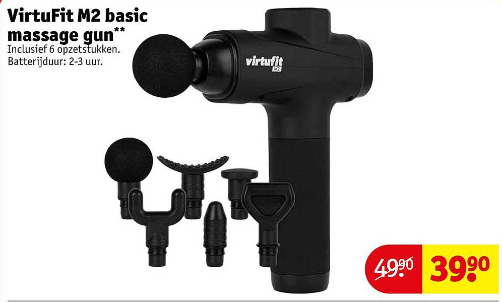 Normaal gesproken kost de VirtuFit M2 basic massage gun €49,90, maar nu profiteer je van een geweldige aanbieding en betaal je slechts €39,90! Dit betekent dat je €10,- bespaart op een product dat je niet wilt missen. Met deze actie is het de perfecte tijd om jezelf of iemand anders een fijn cadeau te doen.
