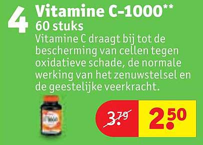 Bekijk de Vitamine C-1000** aanbieding bij Kruidvat! Deze fantastische aanbieding is nu beschikbaar in de nieuwste Kruidvat folder. Profiteer van deze kans en bespaar flink op je aankoop.