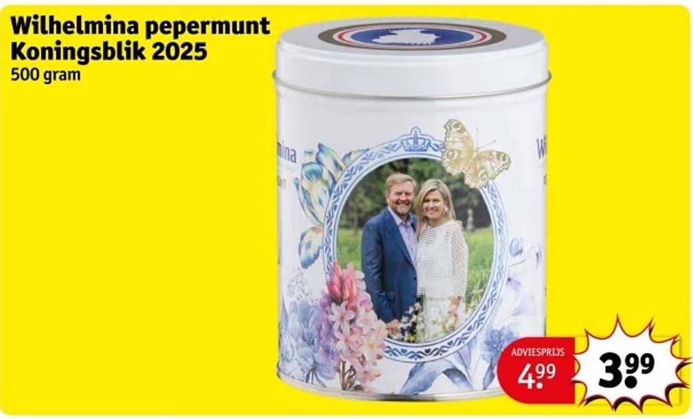 Bekijk nu de Wilhelmina pepermunt Koningsblik 2025 aanbieding in de Kruidvat folder. Deze aanbieding is geldig van 22-04-2025 tot en met 27-04-2025.
