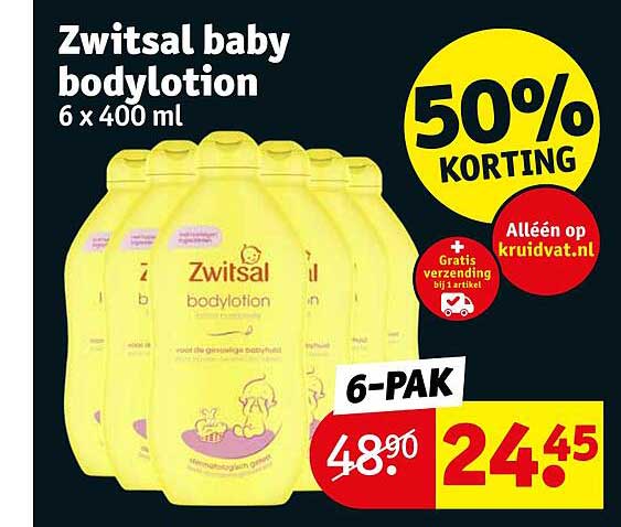 Bekijk de Zwitsal Baby Bodylotion: 50% Korting aanbieding bij Kruidvat! Deze fantastische aanbieding is nu beschikbaar in de nieuwste Kruidvat folder. Profiteer van deze kans en bespaar flink op je aankoop.
