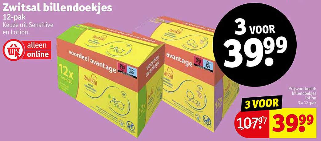 Zwitsal Billendoekjes 12-Pak aanbieding bij Kruidvat