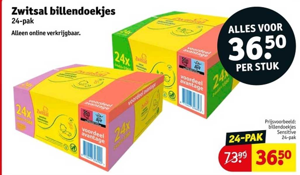 Bekijk nu de ZwitSal billendoekjes 24-pak aanbieding in de Kruidvat folder. Deze aanbieding is geldig van 14-10-2025 tot en met 19-10-2025.