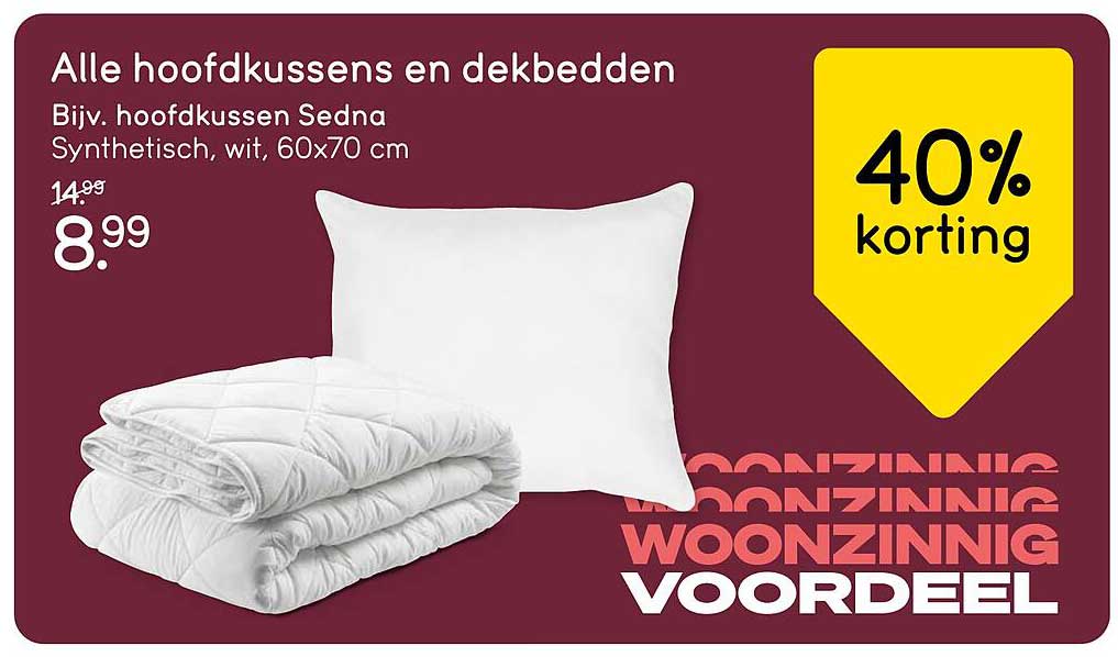 Normaal kost het hoofdkussen Sedna €14,99, maar dankzij deze aanbieding is de prijs nu verlaagd naar slechts €8,99! Dit is een besparing van €6,00, wat neerkomt op een korting van maar liefst 40%. Een aanbieding die je niet wilt missen, zeker niet als je je slaapervaring wilt verbeteren.