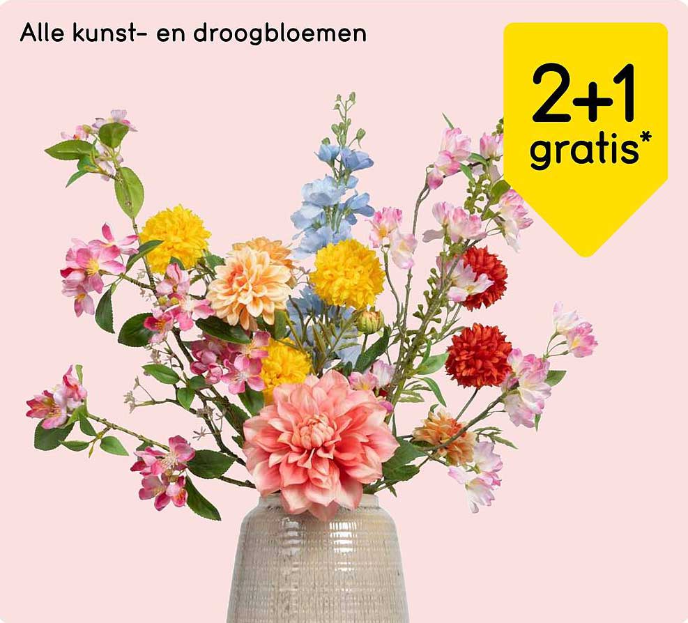 Bekijk nu de Alle kunst- en droogbloemen 2+1 gratis* aanbieding in de Leen Bakker folder. Deze aanbieding is geldig van 01-07-2025 tot en met 06-07-2025.
