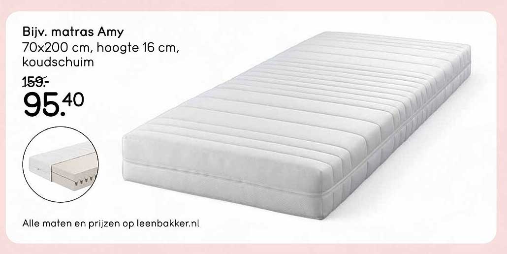 Bekijk nu de Bijv. matras Amy aanbieding in de Leen Bakker folder. Deze aanbieding is geldig van 20-10-2025 tot en met 26-10-2025.