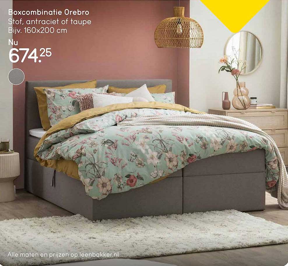 Bekijk nu de Boxcombinatie Orebro aanbieding in de Leen Bakker folder. Deze aanbieding is geldig van 20-10-2025 tot en met 26-10-2025.